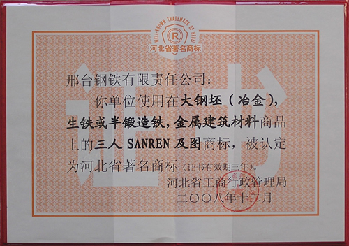 “三人”注冊商標(biāo)被認(rèn)定為河北省著名商標(biāo)