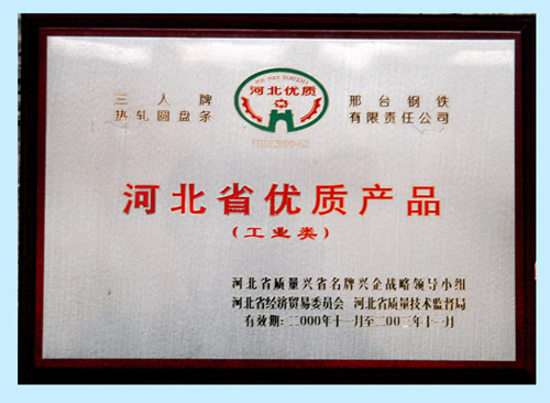 三人牌熱軋圓盤條獲河北省優(yōu)質(zhì)產(chǎn)品(工業(yè)類)