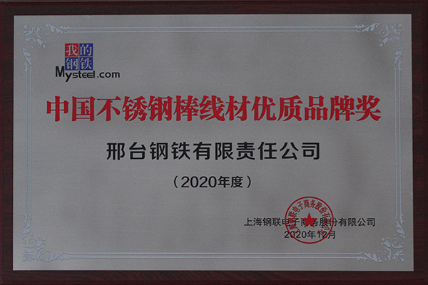 邢鋼獲中國(guó)不銹鋼棒線材優(yōu)質(zhì)品牌獎(jiǎng)