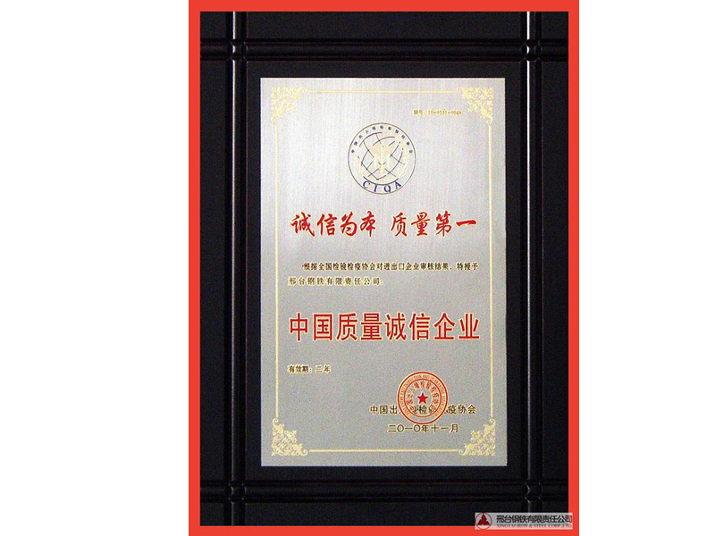 2010年11月,中國出入境檢驗檢疫協會授予邢鋼“中國質量誠信企業(yè)”。