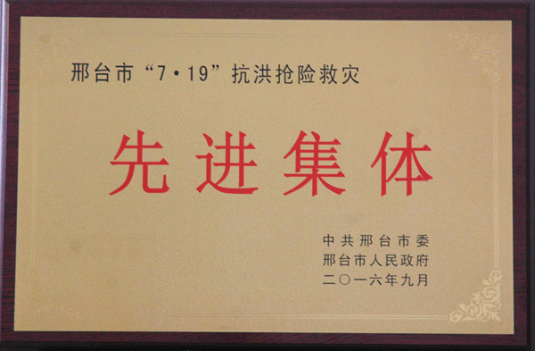 邢鋼被邢臺市授予“7?19” 抗洪搶險救災(zāi)先進集體榮譽稱號