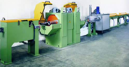 1、推進裝置將盤條推進至工作位置,經(jīng)放線機后進入到同步裝置,同步裝置的滑輪可以累積大約2米的盤條,用于在萬一發(fā)生纏繞時停止生產(chǎn)線。