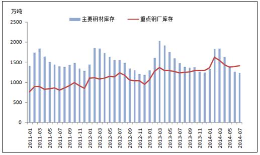 目前,中國鋼材市場正處于去庫存時期,主要鋼材的庫存量正在快速減少。據(jù)我的鋼鐵數(shù)據(jù)庫顯示截止2014年8月8日,中國主要鋼材庫存量為1190.35萬噸,與去年相比下降202萬噸,同比降幅為14.5%。3月至7月的平均降速達到9.62%,已大幅度超過以往的去庫存速度。庫存量的快速下降,一般意味著下游行業(yè)對鋼材需求的增加,鋼材市場的情況理應十分良好,但實際上鋼材的價格卻是不增反降。據(jù)悉,中國7月的Myspic普鋼絕對價格指數(shù)為3393.54元/噸,同比下降8.56%。