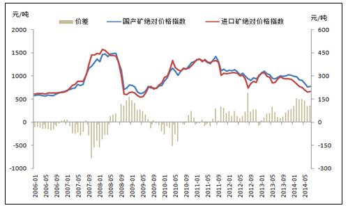 圖5:進口礦和國產(chǎn)礦絕對價格指數(shù)