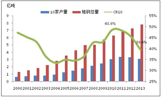 產(chǎn)業(yè)集中度過低,首先會加劇企業(yè)間的無序競爭,減弱了企業(yè)在價格上的談判能力,導致盈利能力減弱;其次,會拉低中國鋼材的整體品質(zhì)和檔次,一旦產(chǎn)業(yè)集中度提高了,企業(yè)會有更多的精力和資金來升級加工裝備,研究出品質(zhì)更好的鋼材,提高中國在國際貿(mào)易中的競爭力;第三,生產(chǎn)的過度分散會造成資源的極大浪費,帶來更多的環(huán)境污染,進一步降低中國的產(chǎn)能利用能力。所以為了鋼鐵行業(yè)的健康發(fā)展,我們必須要進行產(chǎn)業(yè)結(jié)構(gòu)的整合,鋼鐵企業(yè)重組勢在必行。