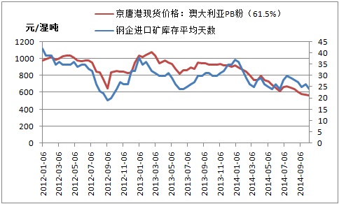 圖三:鋼企進口礦庫存天數(shù)與京唐港澳粉價格走勢