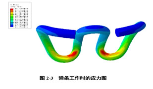 彈條是高速鐵路扣件系統(tǒng)中的核心部件。我國(guó)高速鐵路采用的是ω形彈條。彈條的作用是將鋼軌牢牢地固定在鐵墊板上,除必須有一定扣壓力外,還必須能承受來自鋼軌的垂向力、橫向力和縱向力的作用。在工作過程中,彈條不僅有彎曲變形,還有扭曲變形,本身呈現(xiàn)比較復(fù)雜的應(yīng)力狀態(tài)。下圖是在初始扣壓力下用有限元軟件分析的彈條應(yīng)力圖。從圖中可以看出:兩臂與中間兩肢連接處是變形集中的部位,急劇的彎曲變形引起彈條疲勞壽命降低。應(yīng)力最大處在彈條外側(cè)兩臂與中間兩肢連接之處,這也是彈條實(shí)際失效之處。