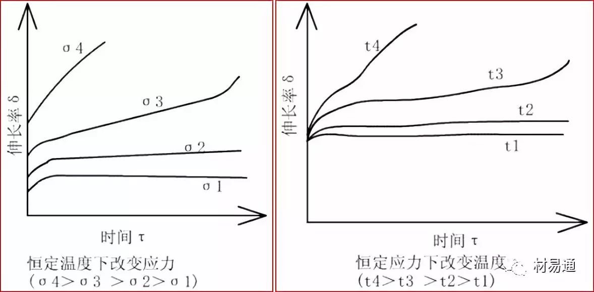同種材料的蠕變曲線隨應力的大小和溫度的高低而不同。