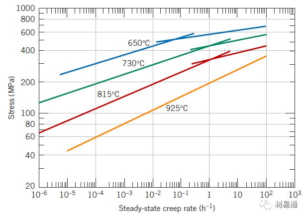 同一溫度下,蠕變第二階段應力σ與穩(wěn)態(tài)蠕變速率ε之間,在雙對數坐標中呈線性經驗關系。
