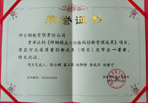 為激發(fā)萬眾創(chuàng)新熱情,提高創(chuàng)新質量,促進創(chuàng)新交流,河北省質量文化協(xié)會于2020年7 月2日至3日在石家莊召開了河北省第三屆質量創(chuàng)新成果(項目)發(fā)布會。經申報材料評審,大會發(fā)表,專家評審,邢臺鋼鐵有限責任公司申報的4項質量創(chuàng)新成果(項目)全部獲獎。