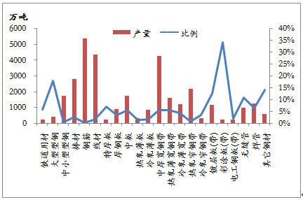 1-5月份,我國(guó)共出口鋼材1791.7萬(wàn)噸,棒線(xiàn)材、角型材、板材、鋼管、鐵道用材和其它用材分別占11.4%、5.9%、60.1%、15.4%、1.0%和6.2%,板材所占份額最大,棒線(xiàn)材和鋼管次之。就前5個(gè)月出口量而言,退稅取消的鋼材品種出口數(shù)量為703.3萬(wàn)噸,占1-5月份鋼材出口總量的39.3%。雖然鋼材總出口量只占到國(guó)內(nèi)產(chǎn)量的5.1%,但仍有部分品種出口占產(chǎn)量的比例較大,對(duì)出口具有一定依賴(lài)性。鍍鋅板、熱軋板卷、中厚板和大型型鋼的出口數(shù)量占產(chǎn)量的比例較大,在出口稅率下調(diào)的情況下,國(guó)內(nèi)資源供應(yīng)的壓力將會(huì)明顯增大,從而影響到國(guó)內(nèi)價(jià)格的運(yùn)行。不過(guò),在政策執(zhí)行日期之前,出口企業(yè)必定要加緊落實(shí)前期簽訂的合同,熱軋卷等品種的出口可能會(huì)加大,對(duì)國(guó)內(nèi)鋼材市場(chǎng)將是利好。