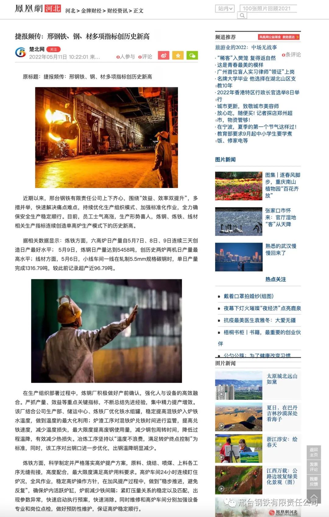 鳳凰網(wǎng)河北頻道:邢鋼鐵、鋼、材多項指標(biāo)創(chuàng)歷史新高
