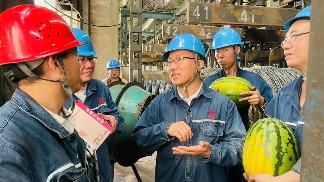 7月8日上午,為落實(shí)公司黨委書(shū)記、董事長(zhǎng)張育明關(guān)于“把防暑降溫、關(guān)愛(ài)員工、安全生產(chǎn)等抓細(xì)抓實(shí)”的工作要求,夏日送清涼活動(dòng)有序開(kāi)展,公司向煉鋼、線材、煉鐵、燒結(jié)、動(dòng)力、儲(chǔ)運(yùn)高溫下堅(jiān)守崗位的職工送去西瓜、飲料慰問(wèn)品及防暑降溫必備物資用品,把企業(yè)的關(guān)懷送到職工心坎里,對(duì)大家一直以來(lái)為邢鋼辛勤付出表達(dá)謝意,并囑咐在崗員工在堅(jiān)守崗位的同時(shí)注意勞逸結(jié)合,謹(jǐn)防高溫中暑,確保身體健康、安全生產(chǎn)。