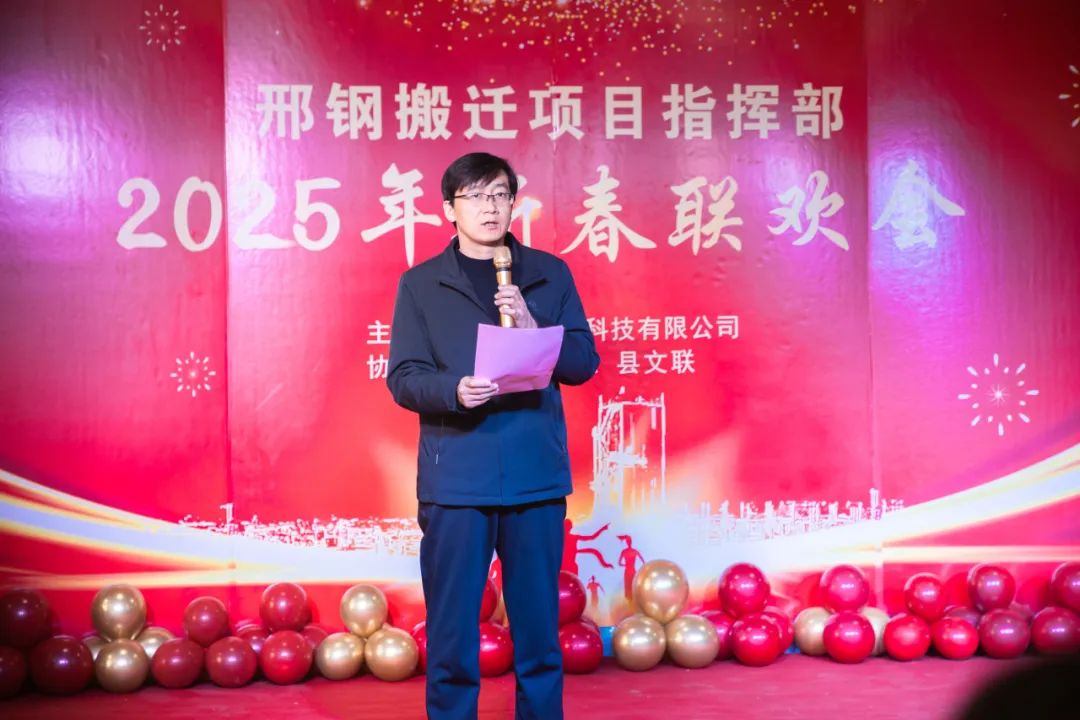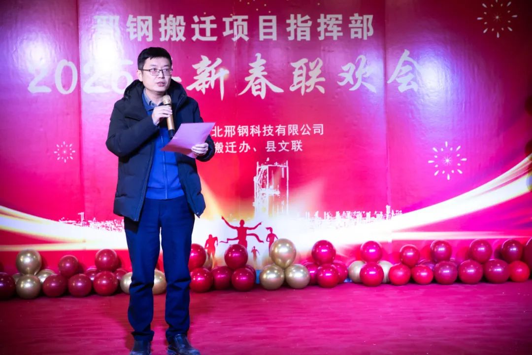 在熱烈、融洽的氣氛中,聯(lián)歡會拉開帷幕。威縣縣委常委、宣傳部長、搬遷專班班長白鋒發(fā)表致辭。他代表威縣縣委、縣政府,向所有關心支持邢鋼搬遷改造項目的各級領導和參與建設的同志們表達了崇高的敬意和衷心的感謝。并高度評價了邢鋼人在過去一年中展現(xiàn)出的團結協(xié)作、頑強拼搏的精神,表示威縣政府將繼續(xù)全力支持邢鋼搬遷項目,推動項目早日建成投產(chǎn),為威縣經(jīng)濟發(fā)展做出更大貢獻。
