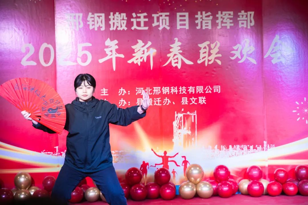 晚會的節(jié)目更是精心籌備、異彩紛呈,現(xiàn)場到處都洋溢著歡樂祥和的氣氛。歌曲、小品、舞蹈、詩朗誦等聯(lián)袂演出,舞臺上節(jié)目吸引眼球,異彩紛呈,舞臺下掌聲雷鳴,互動熱烈,不時掀起一陣陣熱潮:合唱歌曲《咱們工人有力量》旋律激昂、催人奮進;詩朗誦《希冀,奮進,筑夢新邢鋼》陽光、勵志且自信,集中展示邢鋼人對新項目的無限憧憬、內(nèi)心喜悅和自豪;線材廠的魏東的精彩演唱和煉鐵廠的小品《考察》為晚會再添新看點;舞蹈《好日子》歡慶喜悅,小品《我是新邢鋼保衛(wèi),我驕傲》幽默詼諧,太極表演《太極扇》則剛柔并濟、彰顯文化傳承魅力;五冶代表帶來的歌曲《實事求是》和《說書人》展現(xiàn)了施工一線人員的風采和務實精神;縣文聯(lián)的詩朗誦《我喜歡出發(fā)》和歌曲《明天會更好》完美演繹“砥礪奮進、勇毅前行”的時代精神,從而幸福表達了人們對未來美好生活的向往。