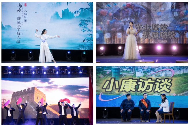 聯(lián)歡會在煉鐵廠震撼人心的《旗鼓飛揚》的鼓聲中拉開帷幕,煉鋼廠、線材廠、新翔公司等二級單位、子公司錄制的《邢鋼一線員工賀新春》視頻為聯(lián)歡會烘托出濃厚的節(jié)日氣氛。碳資產(chǎn)管理部蘆麗華、線材廠張嬌的一首《紅彤彤的春天》讓觀眾如沐春風,銷售公司田芳、張可等的動感現(xiàn)代舞《奔跑吧,兄弟!》又讓觀眾切身感受到市場營銷人員的拼搏、奉獻。焦化廠申學軍、閆俊萍等的《難忘的焦爐情懷》,以情境小品的形式,再現(xiàn)2#焦爐安全停爐的場景,重溫焦化人站好最后一班崗的敬業(yè)情懷;線材廠魏東的《步步高》,唱出了邢鋼人的激情與豪情。技術(shù)中心蔡永賓等的詩朗誦《攜手邢鋼,追夢邢鋼》,以新一代邢鋼人的視角,張揚青春,澎湃激情;煉鋼廠張康健、甄建軍的《想把我唱給你聽》、資金部趙嘉薏的舞蹈《青花瓷》、能源動力部董巖的《匆匆歲月細細地過》、新翔公司郭文杰、景雙輝等的歌伴舞《雪龍吟》展現(xiàn)了鋼鐵人的別樣情懷。晚會中的兩個小品——煉鐵廠的《考察》、煉鋼廠的《小康訪談》,在輕松詼諧的氣氛中,展示了廣大員工對新邢鋼美好未來的信心。邢鋼搬遷項目指揮部與綜合辦公室、線材廠帶來的詩朗誦《希冀,奮進,筑夢新邢鋼》,回顧了邢鋼搬遷項目的建設(shè)歷程,激勵全體員工以更加昂揚的斗志、更加飽滿的激情,投身到各自的崗位上,讓新邢鋼的旗幟,永遠在鋼鐵行業(yè)的巔峰飄揚!